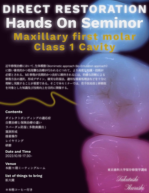 実習 グラスアイオノマーセメント修復 根面齲蝕受講希望のお問い合わせについて(学内のみ)いずれも若干名