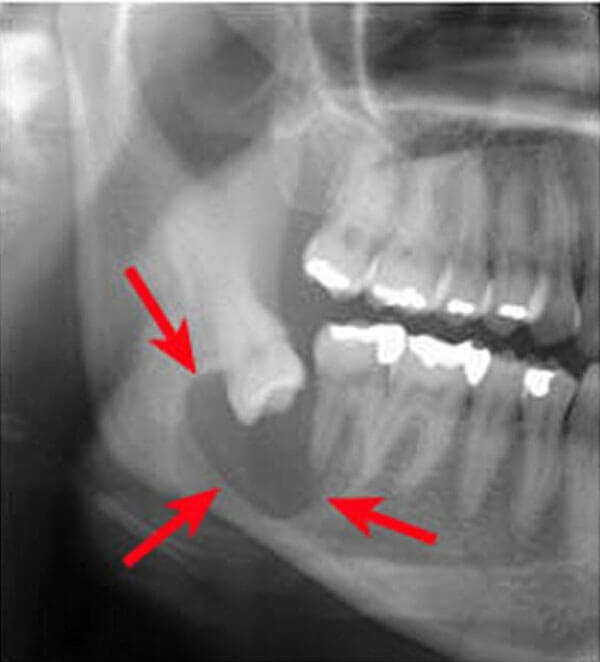 ①顎の骨の中に発生する嚢胞