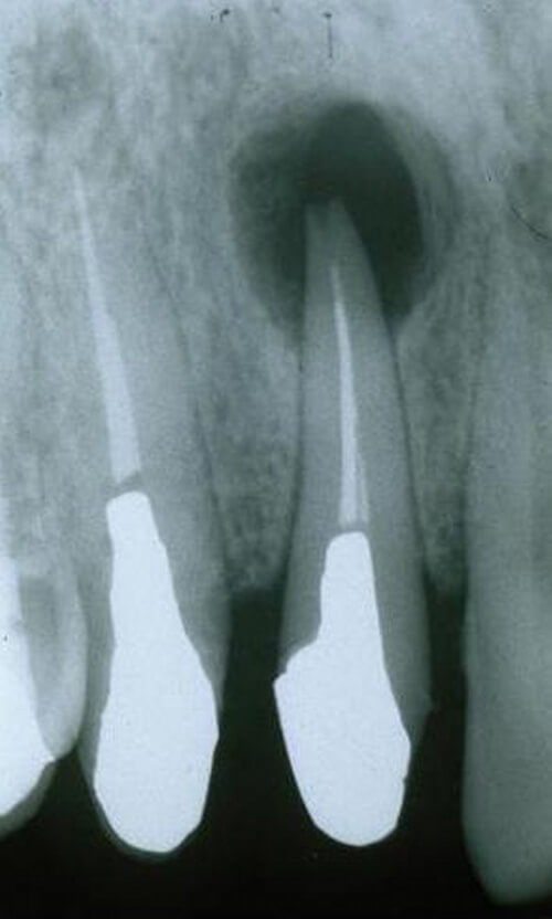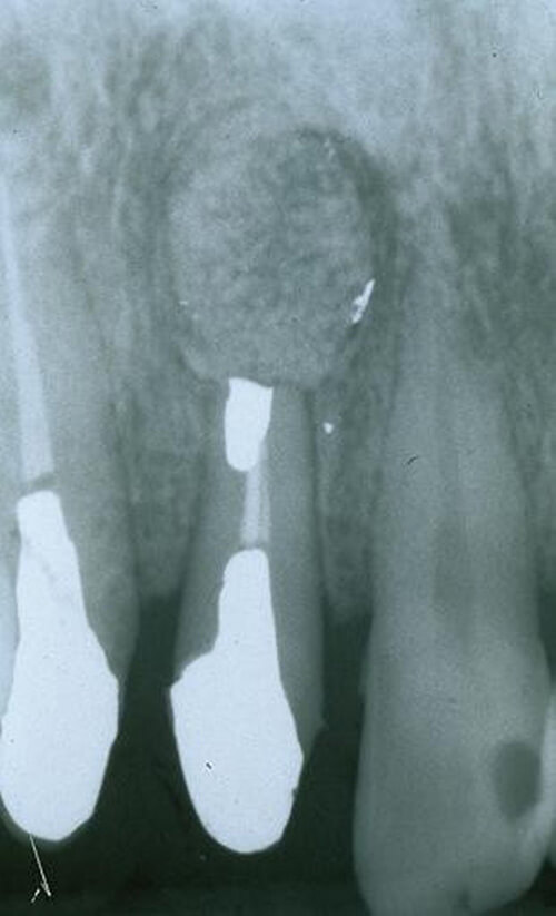 <歯根嚢胞に対する歯根端切除術+嚢胞摘出術>