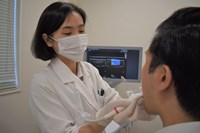 診療放射線技師と協力しながら頭頸部の画像検査および画像診断を行っています。 外来や病棟からの画像検査依頼を受けて単純X線検査、歯科用CBCT検査、CT検査、超音波検査、MRI読影を行います。撮影後には若手が自分で読影診断報告書を作成し、それを指導医がチェックします。画像の向こうに病変に悩む患者さんがいることを忘れずに、疑わしい所見があれば主訴以外の病変についても的確に診断します。 読影診断報告書は翌診療日までに画像とともに院内ネットワークで配信されます。術後変化、推奨される追加検査や病理所見などについても丁寧にフォローをしています。 また、矯正歯科用のセファロ検査、インプラントのためのCT検査などは、外部医療機関からの依頼も受けています。