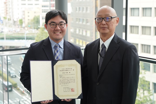 2025年5月15日(木)から17日(土)、キッセイ文化ホールおよびエア・ウォーターアリーナ松本(長野県)にて開催された第79回NPO法人日本口腔科学会学術集会において、生理学講座の倉島竜哉大学院生が若手優秀ポスター賞を受賞した。受賞演題は「象牙芽細胞における細胞内アラキドン酸カスケードを介したPiezo1-TRPV1/TRPA1クロストーク」であった。