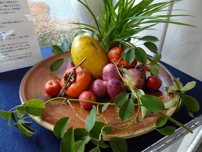 市川総合病院では、毎月季節の室礼(しつらい・飾りつけ)を外来棟1階の渡り廊下に行っています。