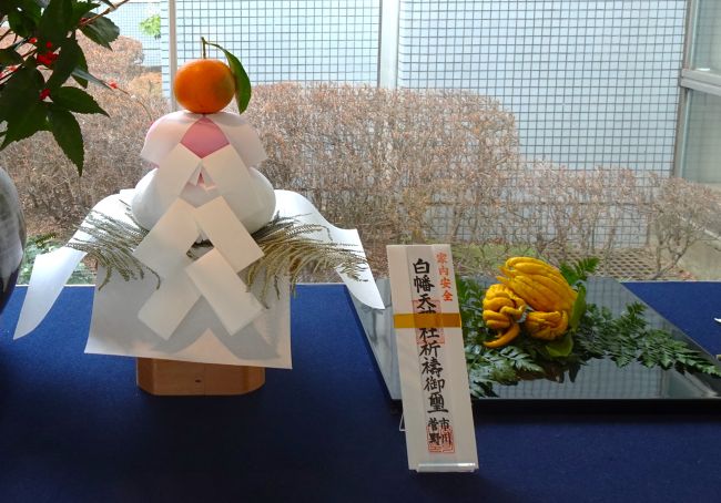 鏡餅は稲の霊が宿った特別な食べ物で年神様の御神体です。橙(だいだい)は実が熟しても落ちずに毎年実を付けることから、代々家が続くといわれています。裏白は葉の裏が白いことから共に白髪になるまでを願います。