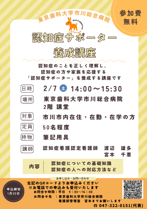 ≪参加者募集≫ 認知症サポーター養成講座開催について