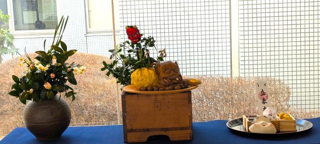 市川総合病院では、毎月季節の室礼(しつらい・飾りつけ)を外来棟1階の渡り廊下に行っています。