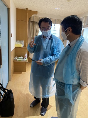 嚥下内視鏡の説明を受ける羅 可聘先生