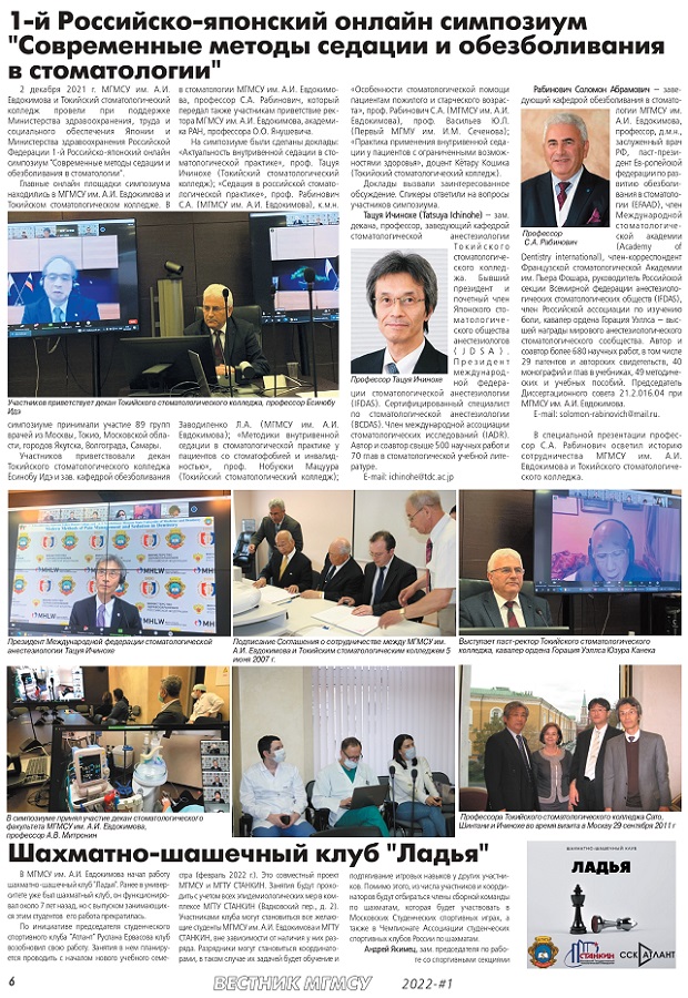 モスクワ医科歯科大学ニュースに掲載されました