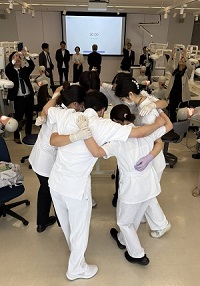 審査直前に円陣を組む参加学生達